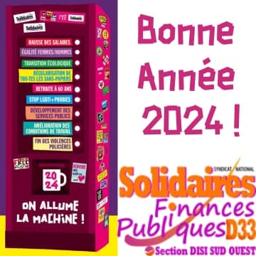 Solidaires Finances Publiques DISI Sud-Ouest vous souhaite une très belle et heureuse année.